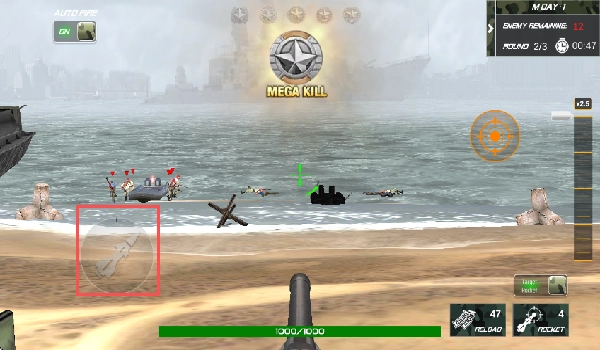 4、你可以利用下方的火箭筒对敌方船只发起攻击,不过得先瞄准目标再点击发射才行。
