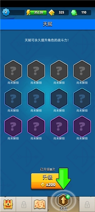 8、完成第一次挑战以后我们可以来升级自己的天赋;