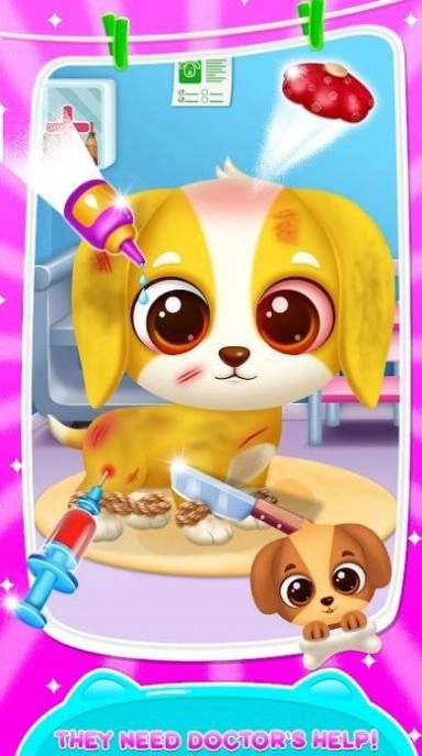 2、这款游戏将会带着玩家体验宠物狗育婴所,感受照顾和训练狗狗的乐趣。
