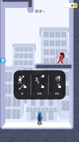 1、下载安装游戏后进入关卡1,跟随教程指引完成拉、松开、点击等基础操作,随后开启战斗挑战。