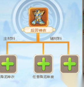 从夸父系列开始直至最后的帝君套装,合成所需材料为一件该阶级该部位的主材料,再搭配一件该阶级的任意材料即可完成合成。与上述几种神装的合成规则有所不同,还望主公们能够清晰辨别。