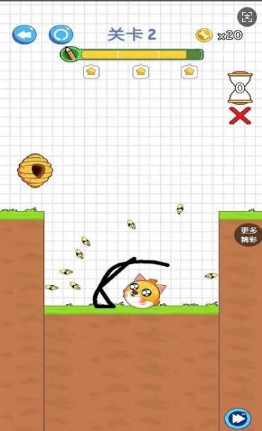 3、关卡设计独具匠心,马蜂会从各类刁钻的角度蜂拥而至。玩家需开动脑筋,寻觅最佳的划线策略,以保障狗狗不被蜇伤。而且每成功通关一关,都会获得趣味十足的动画奖励。