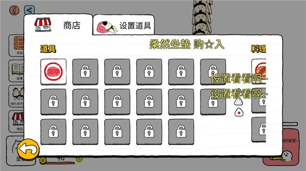 1、除了准备美味的饭,我们还可以在商店处选择道具购买,然后放到场地内。相扑选手会跑过去和道具互动,互动完成后就会留下钱。