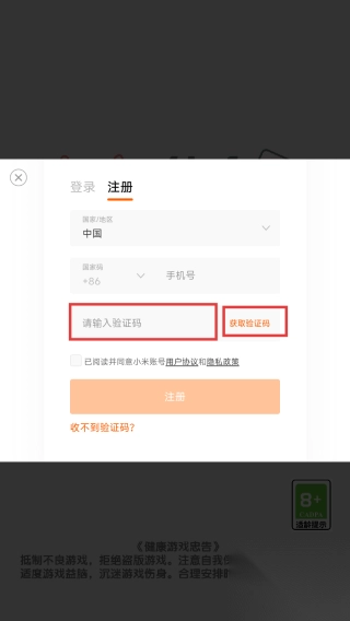 2. 完成上述步骤之后,点击【获取验证码】,随后输入接收到的【验证码】。