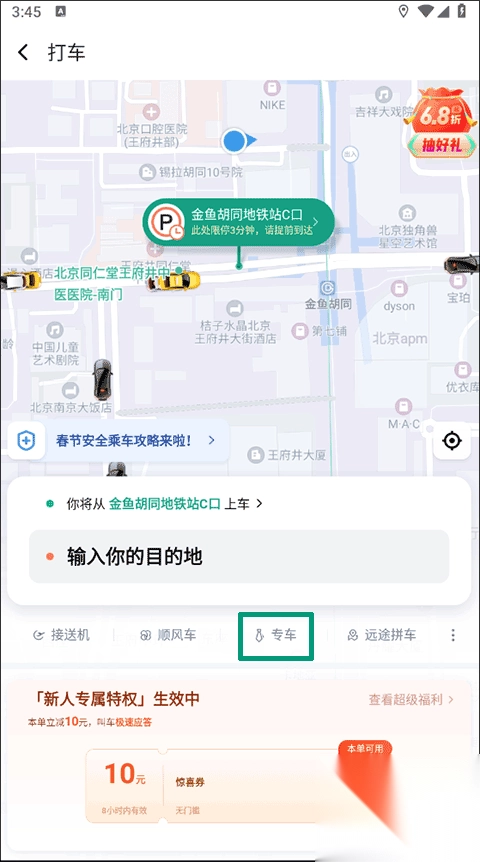 在左下角的模式按钮处,可设置听单模式。其中,实时模式代表马上出发,预约模式则是在一段时间之后出发,建议全选。在回家途中设置目的地时,能够接同路人。开启自动接单后,可省去诸多操作,便于安全行车。舒适型和普通型分别对应专车与快车,大家可依据自身车况进行选择。