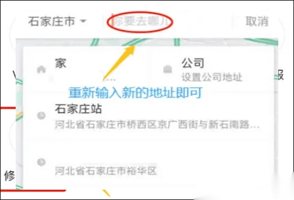6、点击修改目的地之后,系统会提示选择新的目的地,同时会重新开始计价。