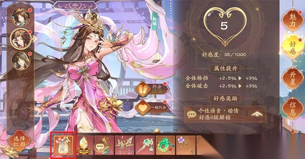 ✦赠送礼物能够提升与红颜的好感度等级(每个红颜都有自己钟爱的礼物,赠送这类礼物会有额外的好感加成),不仅如此,还能提升属性,同时会解锁各种与红颜相关的丰富剧情以及其他交互内容。