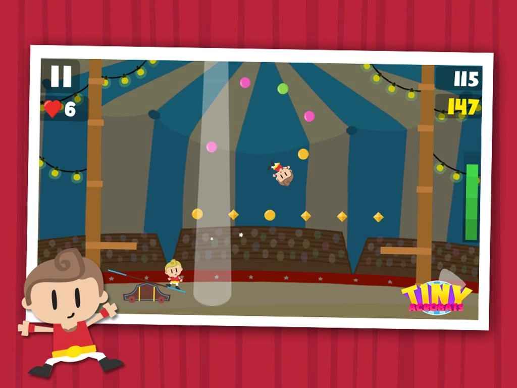 《小小杂技演员》是一款充满趣味的休闲益智游戏。瞧,热闹非凡的马戏团来到了你生活的城市,快喊上身边所有人一同来观看这场精彩演出吧!在游戏世界里,你将肩负重任,操控那些最具疯狂特质的平衡杂技演员,助力他们顺利完成一个个精彩绝伦的节目。随着游戏逐步深入,你不仅能够解锁各种独特成就,还能购买实用道具,展开一系列丰富多样的升级,尽情享受游戏带来的无限乐趣。
