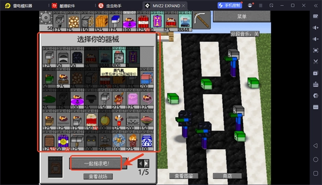 5.将器械放置到草坪上成功抵御僵尸进攻即可