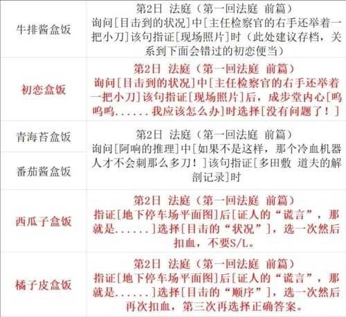 获得方法:具体看下面表格,实际获得成就/奖杯时间是第2日法庭【自供】讯问之后。