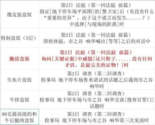 获得方法:具体看下面表格,红色加粗字体表示流程会错过的盒饭,实际获得成就/奖杯时间是第3日调查地下停车场与市之谷响华对话完之后。