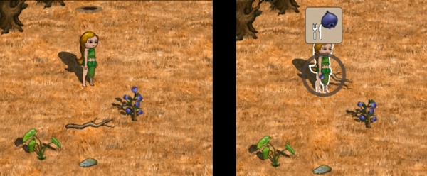 手持的道具,装备的服饰可以直接通过人物形象直接观察。人物进食必须要手持食物,先点击食物再点击人物出现食用图标就可以成功食用美味。