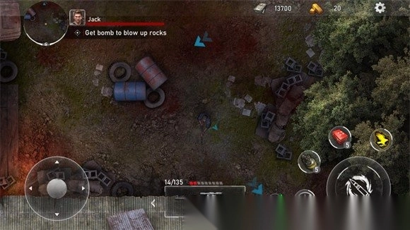 3. 进入关卡后左边控制角色的移动,右边是开火射击和使用各种道具的按钮。
