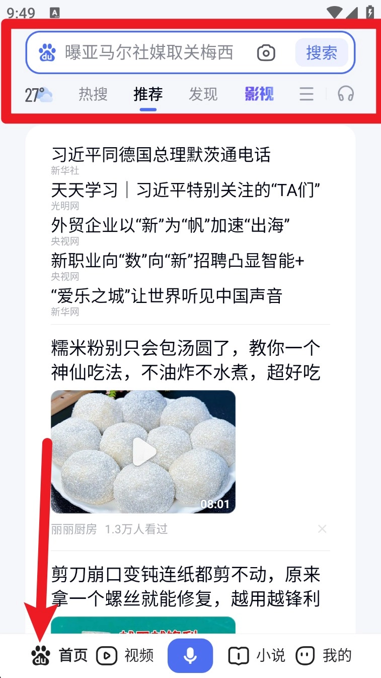 3. 点击底部“首页”可进入推荐流,滑动浏览最新新闻、热搜、图文资讯与短视频内容。