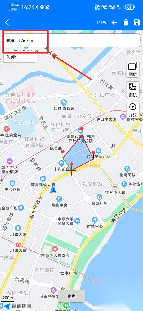 3、面积测量:依据标记点测算面积,是测绘工作的实用工具。