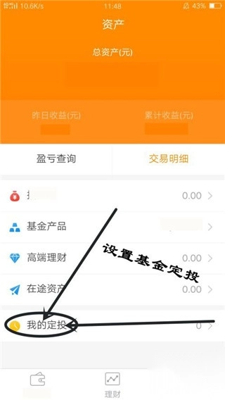 2、于资产页面点击开启“我的定投”,进入后可查看已设置的定投项目,并进行新定投的设置。