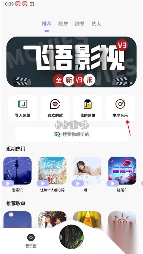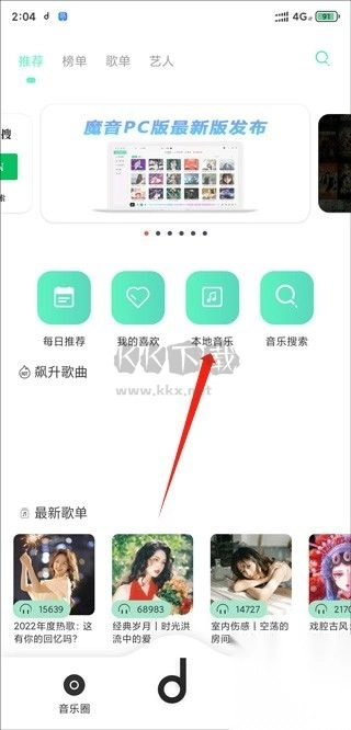 2、下载完成之后回到首页,点击本地歌曲。