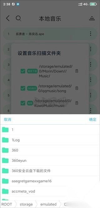 4、点击扫描设置,可以设置音乐扫描的的文件夹。
