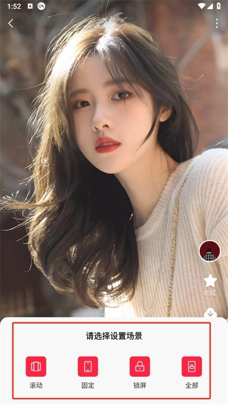 然后用户可以点击要设置壁纸的类型,锁屏或桌面,也可以点击全部,一键设置。选择好点击就会自动进行设置啦