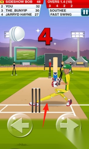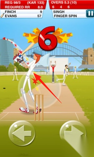 1. 击球机制用于操控火柴人击球手,比赛场地为草地或专业体育场。面对如FingerSpin、FastSwing等不同方式的投球,通过点击左右箭头,让击球手做出“6分击球”“4分击球”等得分动作。