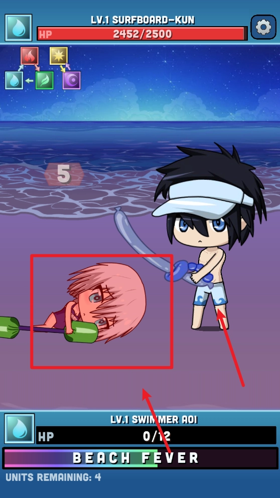 1、采用清新明亮的日系画风,角色设计可爱讨喜。Q版的人物造型搭配沙滩服饰,夏日氛围十足。
