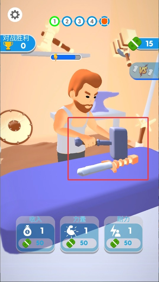 4、魔性画风与写实工艺实现奇妙交融,夸张的锻造特效与严谨的工序流程相互搭配。借助动态粒子效果呈现火花四溅之景,营造出沉浸式的打铁体验。