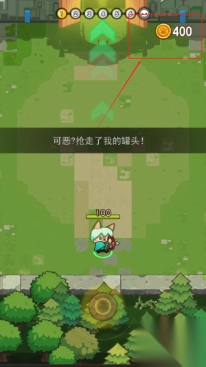 1. 操控猫咪形象躲避障碍物,凭借技能打败敌人,夺回罐头,同时留意血量变动,及时调整战术。
