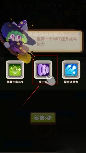 3、在能力选择界面挑选增益效果,如回复生命或强化技能,提升角色战斗力应对挑战。