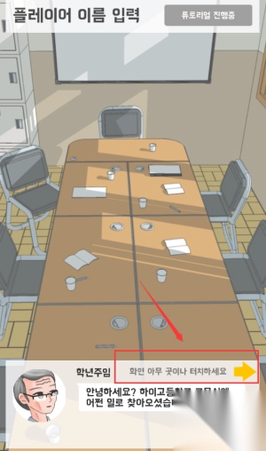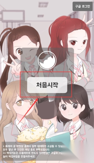 1、点击红色箭头标注的"처음시작"按钮开始游戏。