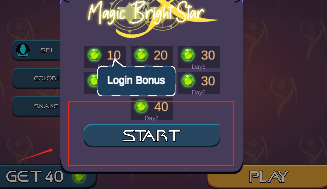 1. 屏幕上呈现PLAY与SETTINGS这两个较大的按钮,直接点击PLAY的紫色按钮便可开启游戏,注意不要点击其旁边带有NO ADS标志的区域。