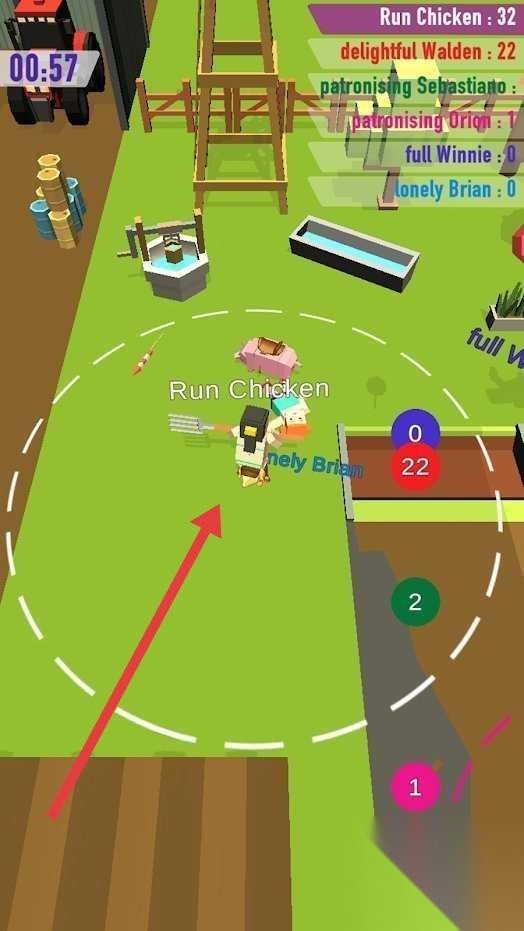2、在对战过程里,操控“Run-Chicken”,借助叉子去捕捉动物(像粉色小猪这类),同时留意对手(lonely - Brian),并积极抢夺资源。