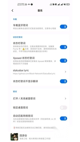 回到音乐App,播放一首歌曲,检查状态栏歌词是否正确显示。如果未显示,请检查应用权限是否已正确授予。
