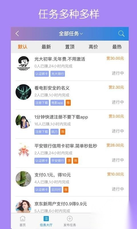 任务多种多样,各种任务应有尽有,用户可以自主选择接单;
