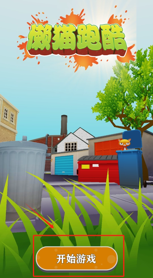 1、点击彩色标题下的嫩猫跑酷,再点草地上的橙色开始游戏按钮就能玩了。