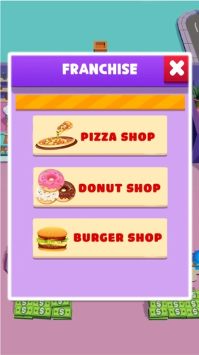 1,在游戏中,你扮演一个亲自动手的披萨店老板,购买披萨制作机器,桌椅,雇佣员工,开始送货服务。