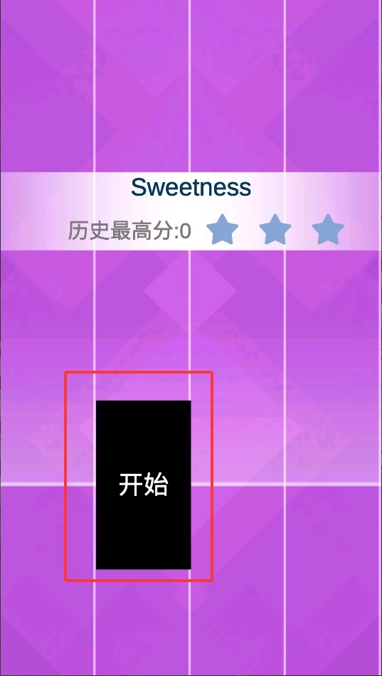 1、进入游戏界面后,首先找到"开始"按钮轻触启动,这时会出现颜色各异的琴键等待操作。