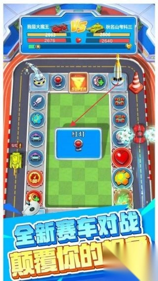 3、在赛车对战过程中,点击赛道中间的技能格,即可释放相应技能,帮助你战胜对手。