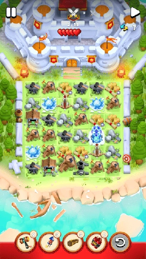 比赛领主塔防 TD 这款游戏极具创新性,巧妙融合了三消与策略塔防两种元素,带来独特的对战体验。在棋盘状的战场上,玩家要精心布置炮塔,并进行合成升级操作,以此来抵挡敌人的进攻。具体玩法是,玩家只需合并两个或者三个一样的塔防单位,就能让其战斗力得到提升。不仅如此,玩家在游戏过程中还能开启宝盒,从中随机获取武器,为自己的战斗助力。