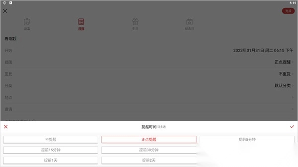 所有事项添加完成后,点击页面右上角的【完成】即可添加一个日程