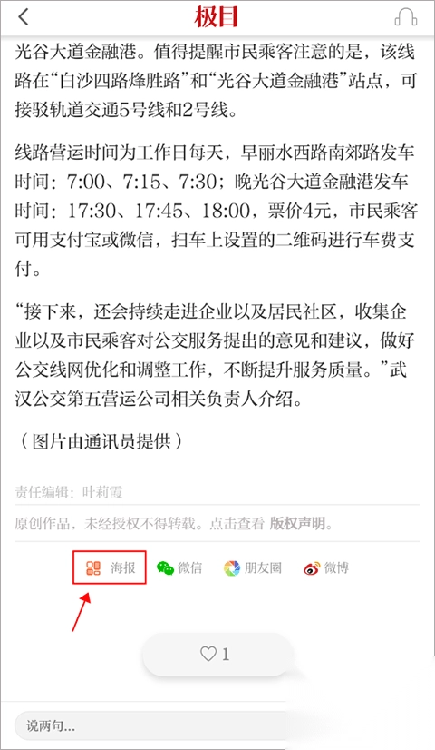 1、阅读完文章后,下滑至页面最底部,那里有一个“生成海报”按钮。