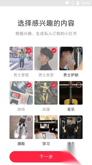 3、选择感兴趣的内容,系统会根据这些进行推荐;