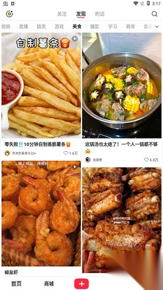 4、打开软件后,可在界面上方挑选美食,点击进入美食页面,便能看到琳琅满目的美食。