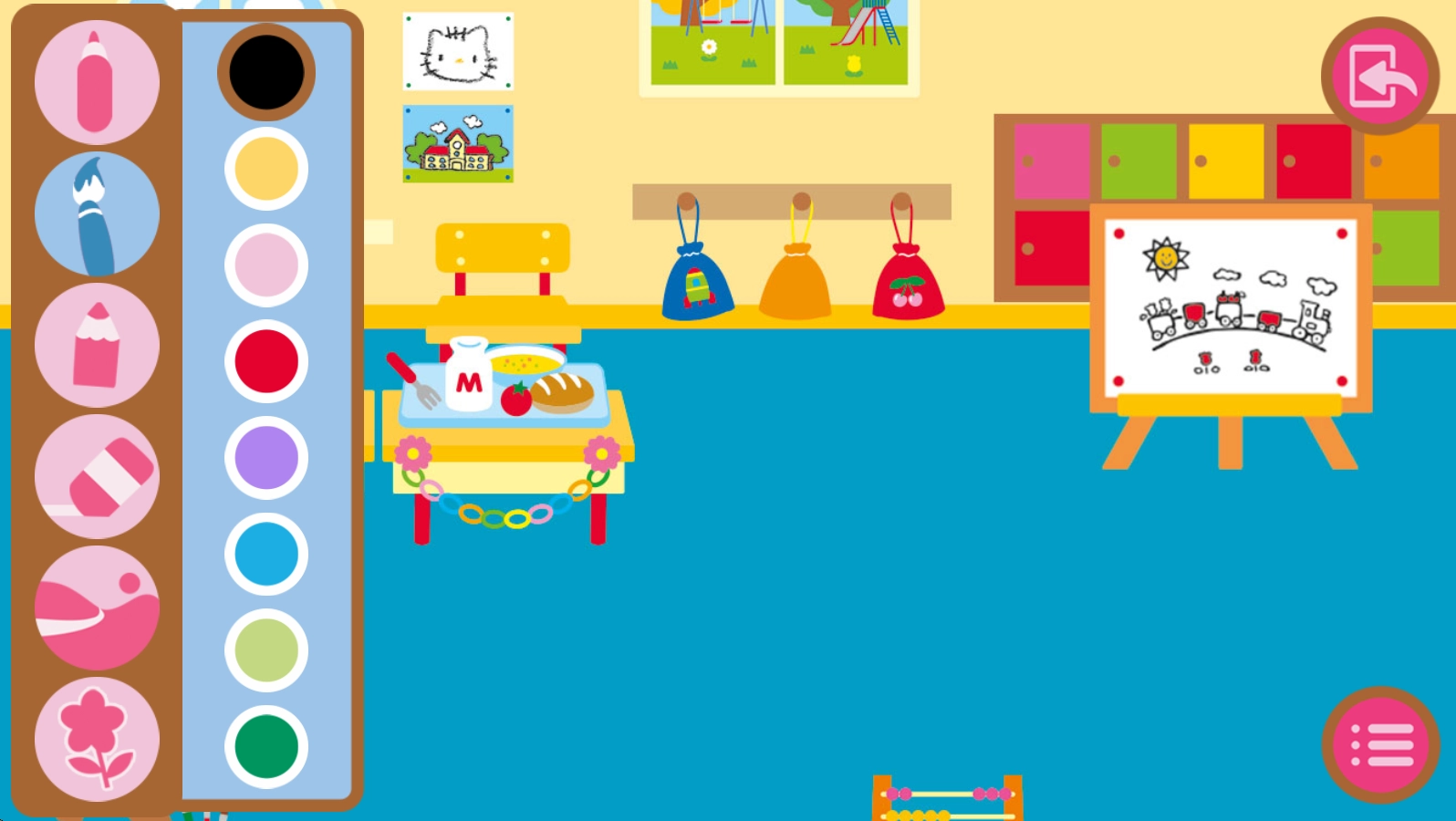 3、与凯蒂猫一同在小镇游历,于面包店、剧院、公交车、图书馆等场景里探寻更多有趣的事物。