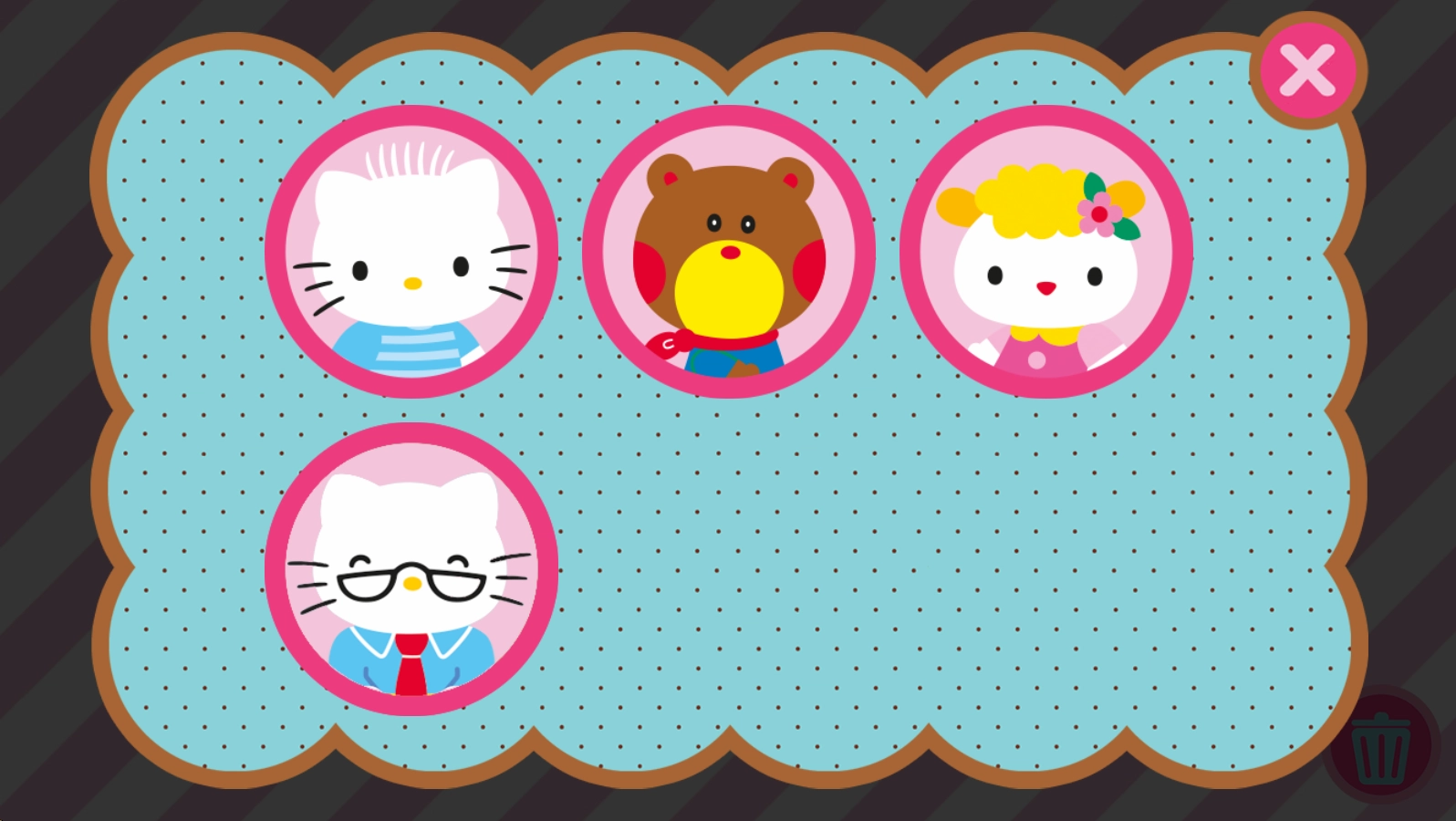 1、特色的凯蒂猫主题设定画面,各种背景图片也是随时可以轻松切换的;