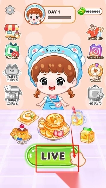 2. 借助游戏任务获得的收益,能够在商店选购装扮,为女孩变换造型,并自由装点直播场景。