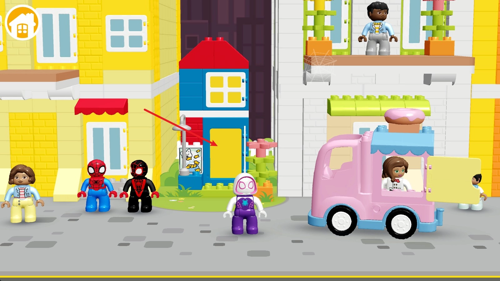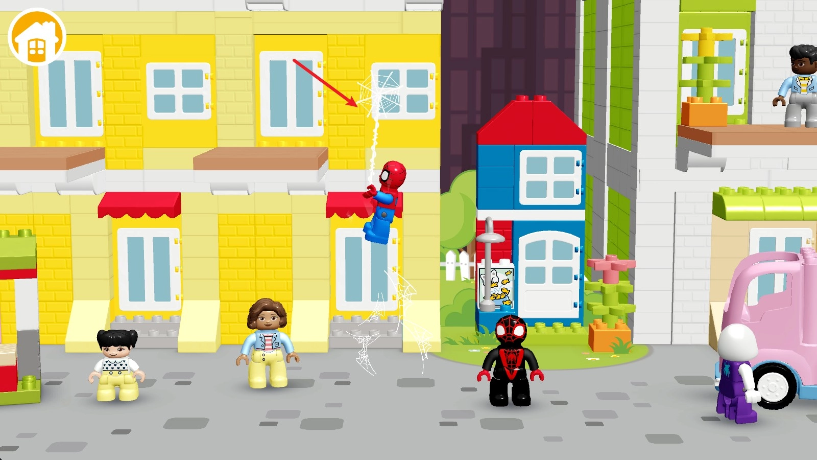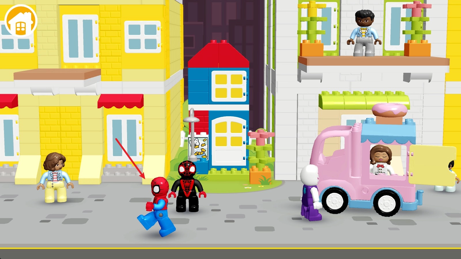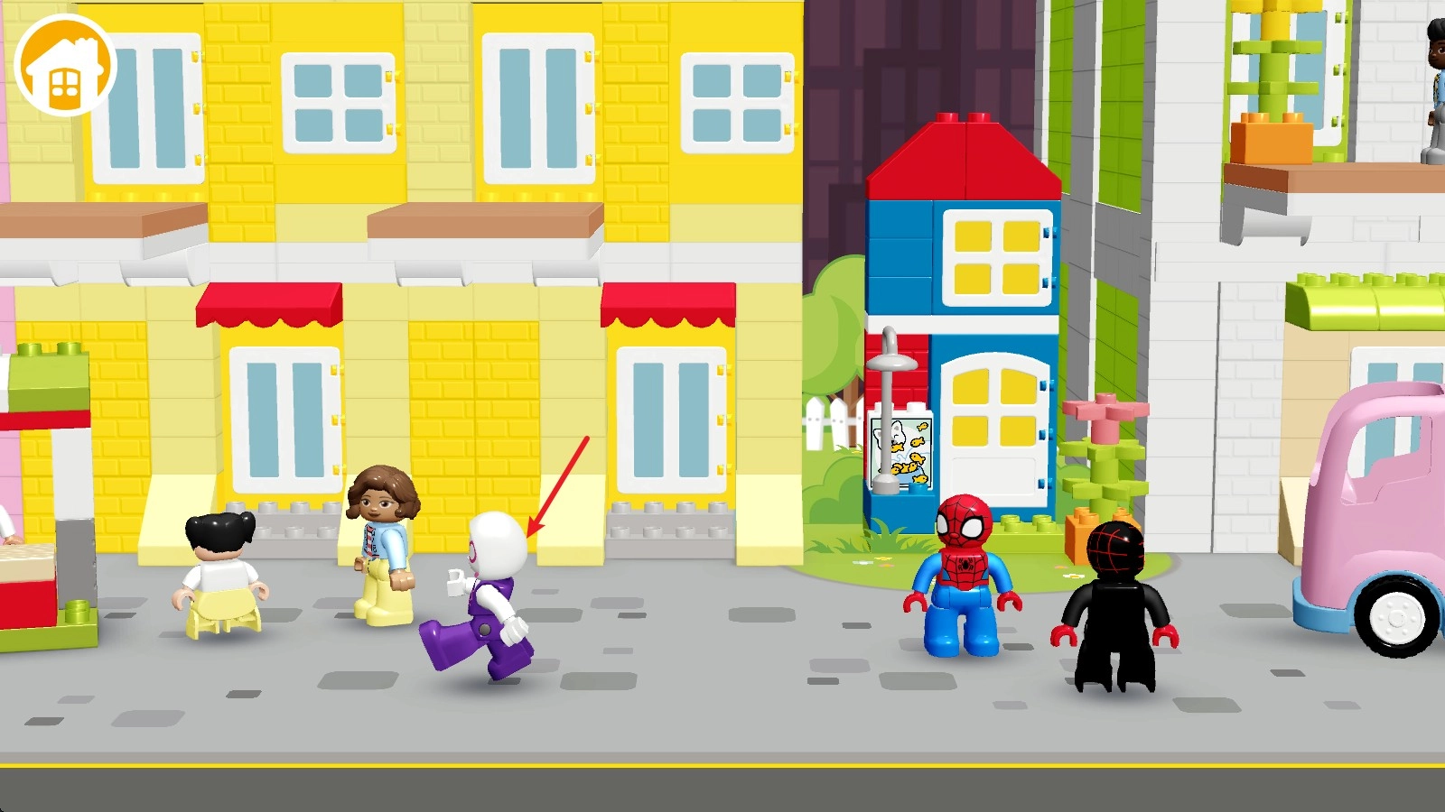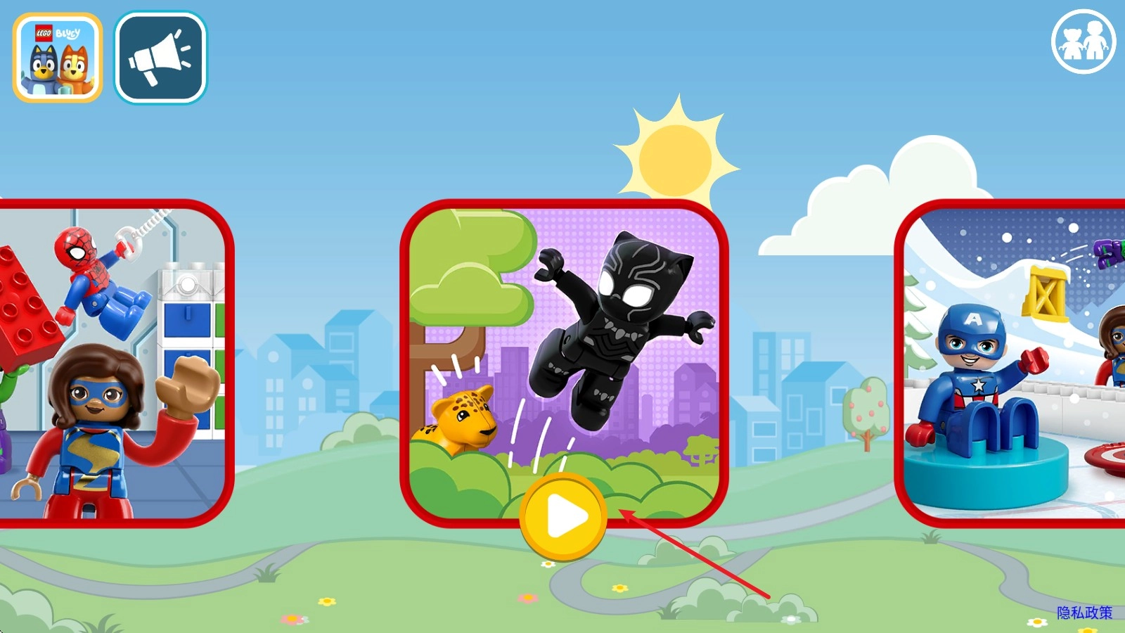 2. 当进入游戏之后,我们会看到三个乐高角色,在游戏画面中点击任意位置就能实现移动。