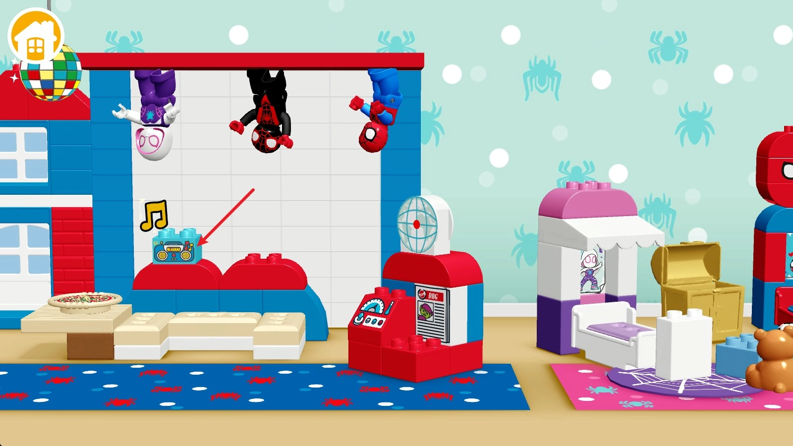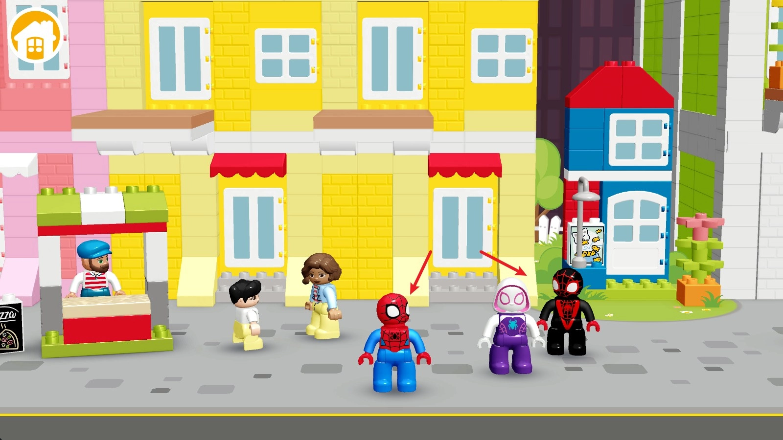 1. 当进入场景时,默认会出现三个乐高角色,你能够操控其中任何一个。