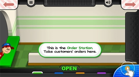 -顾客将前往屏幕左侧的订单柜台,记录下客人所要点的披萨口味。同时店铺升级后可以接送货到门的订单。