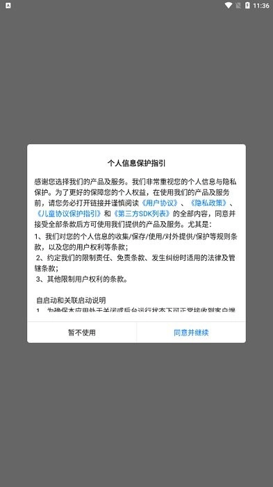 个人信息保护指引,点击同意并继续按钮。