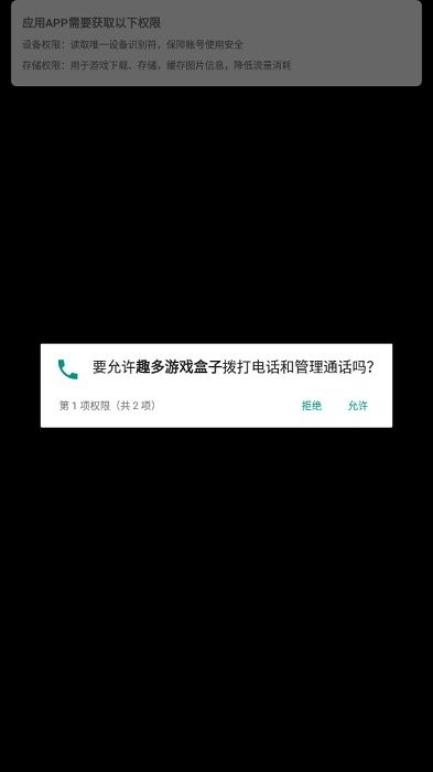 要允许趣多游戏盒子拨打电话和管理通话吗?点击允许按钮。